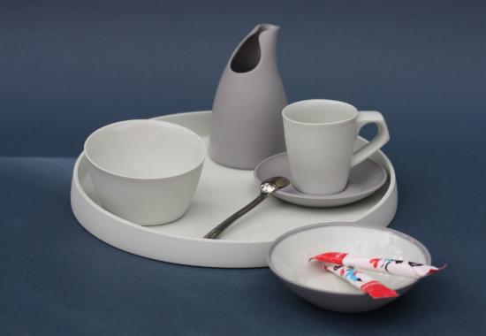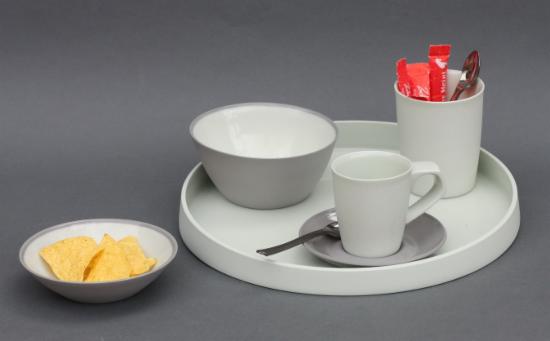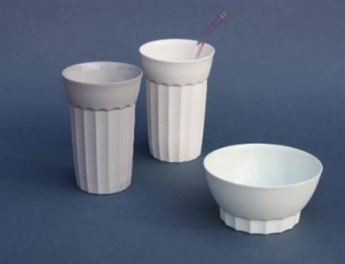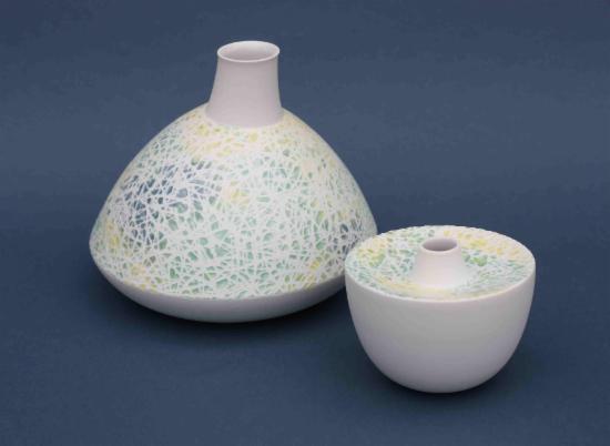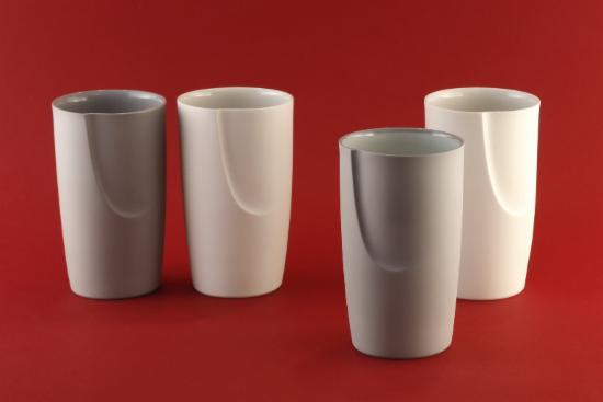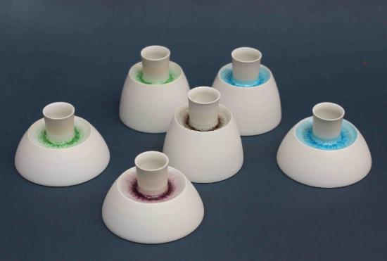 Neu sind zweifarbige Schalen und Becher, bei denen unterschiedlich eingefärbte Porzellanmasse in zwei Schichten gegossen wird.