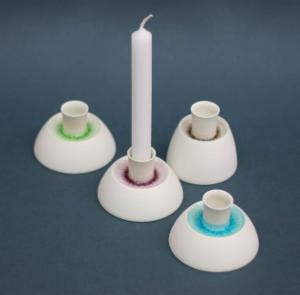 weißes Porzellan mit farbigem Glas